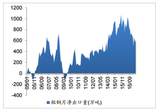 钢材5月出口量同比大幅下降。5月份,我国出口钢材698.00万吨,同比下降 25.90%;进口钢材111.00万吨,同比上升1.83;我国粗钢净出口615.11万吨,同比 减少29.83%,环比增加8.48%。 我国钢价走使得出口的国际市场竞争力弱化,叠加全球经济整体复苏乏力,出 口市场钢需难以显著提振。进入7月,国际上对中国钢铁反倾销情绪依然严峻,叠加 国际市场依然供过于求,预计钢材出口量环比将有所下降。