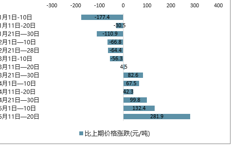 2018年中国柴油(0#国Ⅴ)价格涨跌值走势图