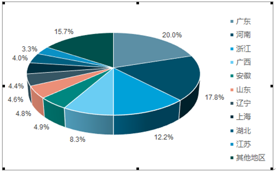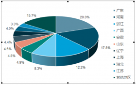 图表18: 中国泡沫塑料制造行业区域分布(按工业总产值)(单位:%)