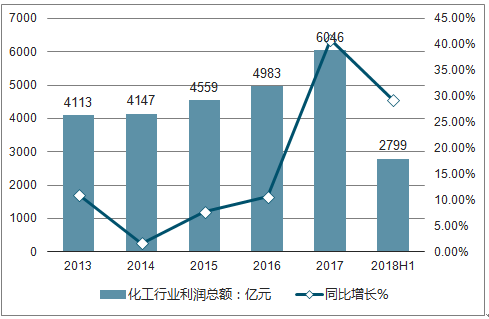 2018年上半年,化工行业实现利润总额达2799亿元,上年同期利润总额为2162亿元,同比增长29.4%。