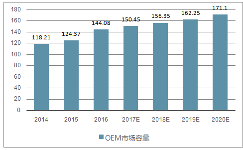 国内橡胶减震产品OEM市场容量(亿元)