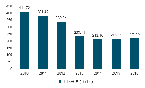 2010-2016年我国工业用润滑油需求量走势