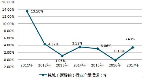 2011-2018年中国纯碱(碳酸钠)行业产量增速情况