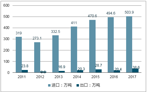 2011-2017年我国石油沥青进出口量分析