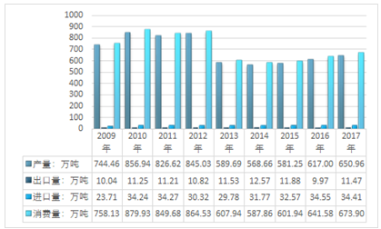 从产量变化情况来看, 2015年我国润滑油产量为581.25万吨,2016年我国润滑油的产量为617.0万吨,2017年我国润滑油产量在650.96万吨左右。