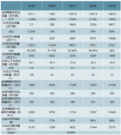 全球手机GaAsPA需求量预测
