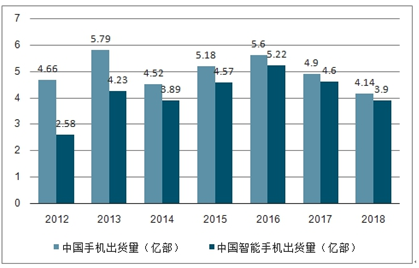 2012-2018年中国手机、智能手机出货量统计情况
