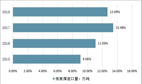 自2016年煤炭去产能行动以来,我国炼焦煤进口依存度逐年提升,依存度从2015年的9.06%上升至2017年13.48%。而2018年在严格的进口控制政策之下,炼焦煤进口有所下降,导致进口依存度小幅下降至12.69%。