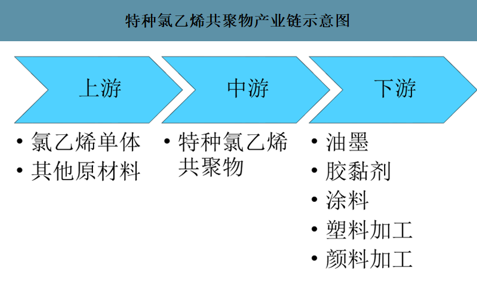 特种氯乙烯共聚物的上游是化工基础原材料,如氯乙烯单体(VCM)、醋酸乙烯(VAc)及环氧树脂等;下游是油墨、涂料和油漆、胶黏剂、色片、磁卡基材、塑胶地板、工程塑料和建筑型材等。未来,随着特种氯乙烯共聚物性能的深入研究,其终端用途还将扩大。