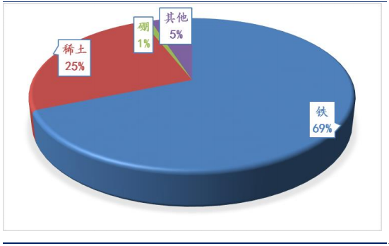 中国稀土储量丰富。稀土行业由于和军工、智能制造、电子元器件等行业高度相关,因此备受国家各方关注。我国稀土储量约为 1,500 万吨,占全世界储量的 23%。我国的稀土矿分为轻稀土和中重稀土两类。轻稀土主要分布在我国北方地区,包头白云鄂博的包头矿、四川江铜的四川矿和山东微山湖的山东矿统称北方矿。轻稀土主要包括镧、铈、镨、钕等元素,其中镨和钕主要应用在磁性材料行业。中重稀土(即离子型稀土矿)主要分布在福建、广东、广西、湖南、江西等南方的几个省区,云南和贵州也有少量的离子型稀土矿,其中镝和铽主要应用在磁性材料行业。