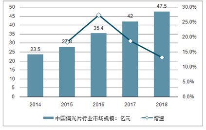 2015-2019年中国偏光片行业市场规模统计及增长情况
