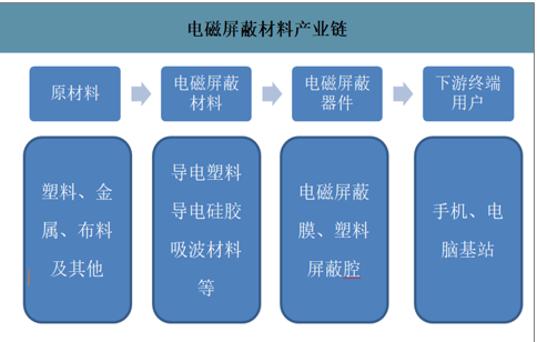 电磁屏蔽材料形式多样,有导电塑料、导电硅胶等形式。电磁屏蔽器件根据需求的不同,可生产为电磁屏蔽腔、电磁屏蔽膜等。终端产品为各类电子产品。