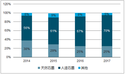 2014-2017 年不同锂电池负极材料类型出货量占比
