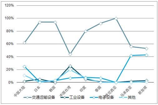 2017年,亚洲粉末冶金应用以交通运输设备为主,其中中国大陆占比为62%,日本占比为94%,韩国占比为94%。