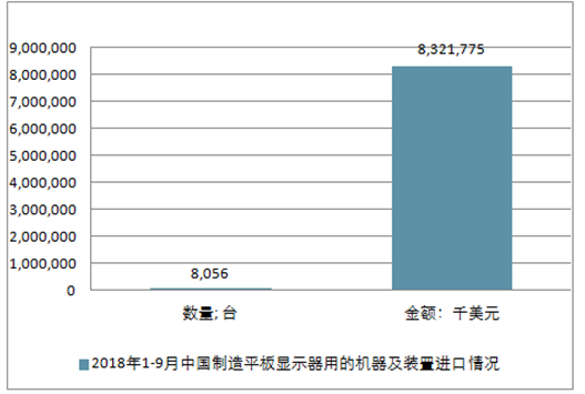 2018年1-9月中国制造平板显示器用的机器及装置进口情况