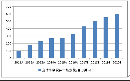 3.2.1 2011-2017年我国车载镜头行业市场规模