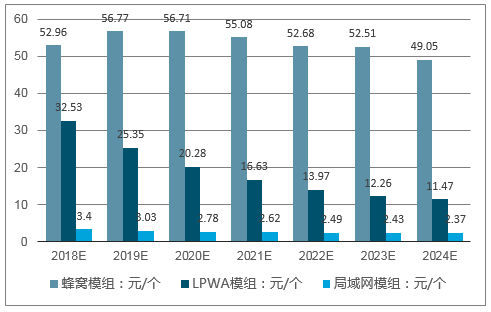 2018-2024年我国物联网模组细分产品价格预测