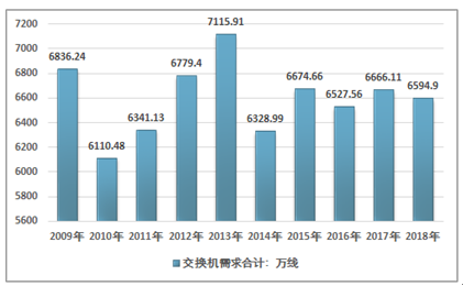 从需求来看,行业需求总体与运营商资本开支,技术换代紧密相关,近几随着中国4G网络建设的放缓,行业需求总体保持小幅波动态势。2017年我国国交换机需求量为6666.11万线,2018年下降至6594.9万线。