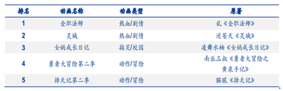 《全职法师》(乱著)、《灵域》(逆苍天著)、《择天记》(猫腻著)等魔幻、玄幻题材进行动画改编的市场反响较好,均排在 2016 年网络文学 IP 改编动画排行榜前 5 位。
