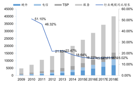图表 3 2009-2018年全球车联网未来三年市场结构及规模预测 43