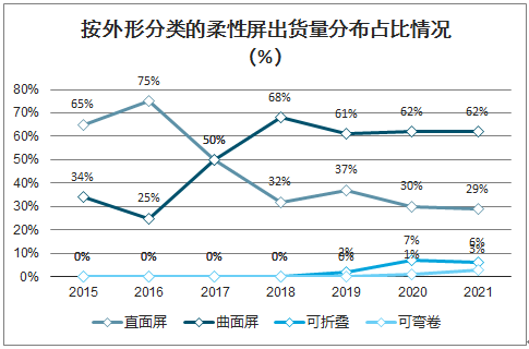 按外形分类的柔性屏出货量分布占比情况(%)