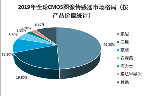 2019年全球CMOS图像传感器市场格局(按产品价值统计)