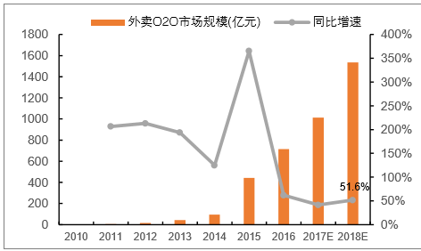 第.一节 2011-2017年中国外卖O2O行业总体规模分析