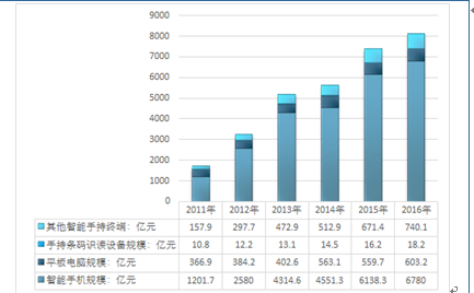 图表:2014-2017年智能手持终端行业需求分析