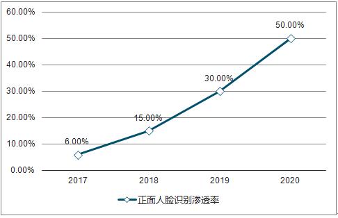 2017-2020年中国正面人脸识别渗透率