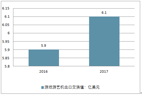 2017年,游戏游艺行业继续沿着转型升级路径发展,积极改进技术、创新玩法,沟通交流,提升国际竞争力。2017年,游戏游艺机出口交货值约为6.1亿美元,同比增长4.0%。