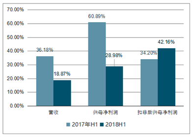 2017H1 及 2018H1 光学元件板块增长情况