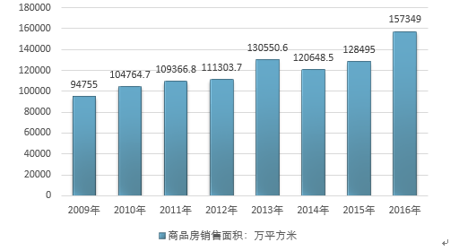 2016年末,中国商品房待售面积69539万平方米,比11月末增加444万平方米。其中,住宅待售面积减少200万平方米,办公楼待售面积增加195万平方米,商业营业用房待售面积增加234万平方米。