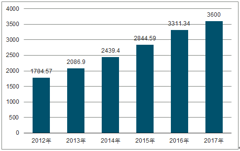 2012-2017年我国居住建筑领域楼宇智能化市场规模(亿元)