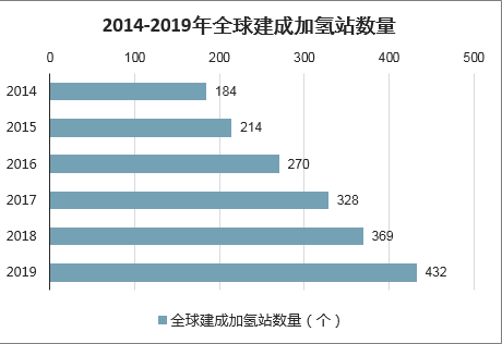 2014-2019年全球建成加氢站数量