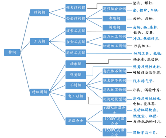 特钢按照用途分类及主要应用领域