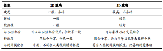 3D 玻璃性能优越,和其他材料相比有比较优势。目前能做手机外壳的有塑料,陶瓷,玻璃,金属等。塑料外壳仅限于低端手机,已经基本被淘汰。小米 note使用了陶瓷后盖,但产量难以上去,同时价格更高,规模化生产和良品率是陶瓷盖板最大的瓶颈。而用 3D 曲面玻璃作为手机外壳,其外观材质更加优越,在散热性,光泽度和耐磨方面更有优势。同时,弯曲的设计和手掌的弧度配合,更加符合人体工程学的要求。