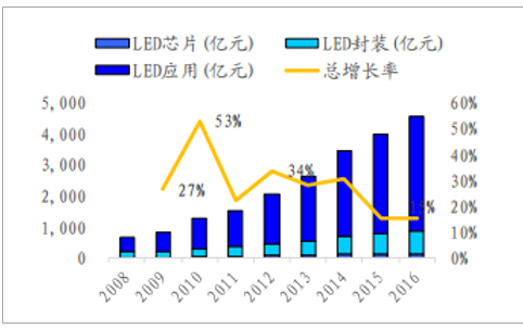 过去十年,我国 LED 整体产值高速增长