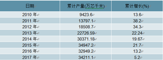 一、光缆行业市场供给分析