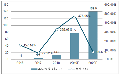 2016年我国无人货架销售市场规模为1.8亿元,占同期国内无人零售市场规模总量的1.06%。2017年无人货架销售市场规模在3.1亿元左右,同比增长72.22%,预计到2020年无人货架销售市场规模将达到139.9亿元。
