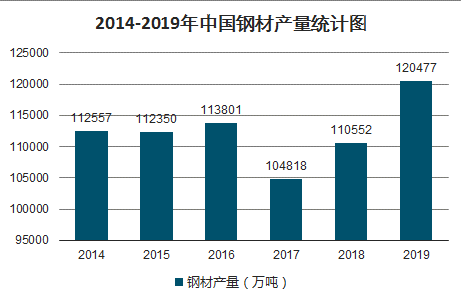 粗钢产量再创历史新高。2019年全国生铁、粗钢和钢材产量分别为8.09亿吨、9.96亿吨和12.05亿吨,同比分别增长5.3%、8.3%和9.8%,粗钢产量再创历史新高。2019年钢铁行业市场需求较好,基建、房地产等下游行业运行稳定,国内粗钢表观消费量约9.4亿吨,同比增长8%。