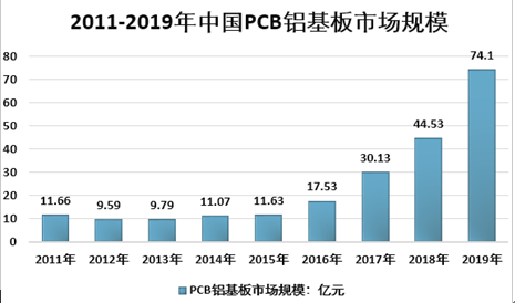 2011-2019年我国铝基板市场规模情况