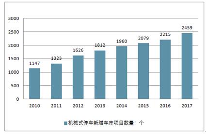2010-2018年中国机械式停车新增车库项目数量情况(单位:个)