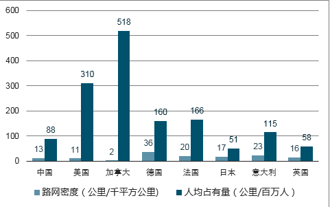 中国目前的高速公路通车里程达到13.1万公里,位居世界第.一,但人均占有量仍低于世界主要发达国家,未来仍有较大发展潜力。