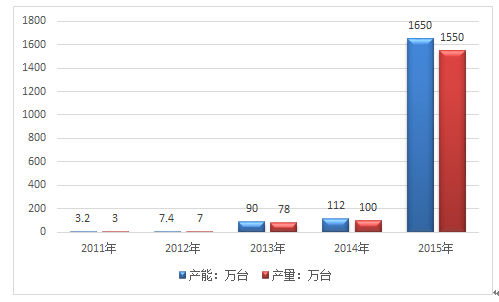2011-2015年我国平衡车行业产能、产量统计