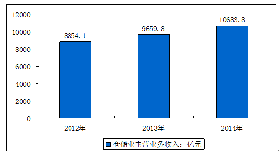 2013-2015年我国仓储业主营业务收入:亿元