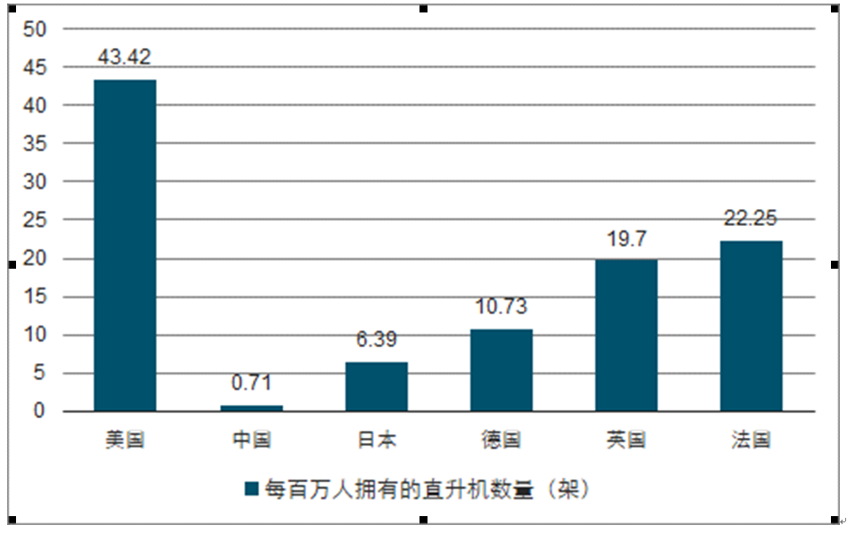 各主要国家每百万人拥有的直升机数量