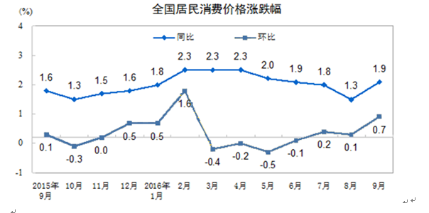 9月份全国居民消费价格走势(CPI)