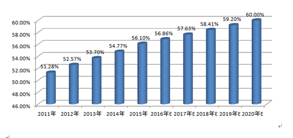 2011-2020年我国城镇化水平及预测