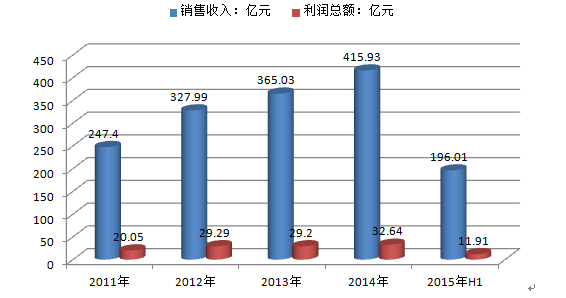 2012-2015年上半年中国印刷机械行业销售收入及利润总额