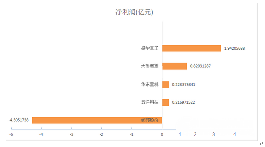 净利润排名:2015年起重运输设备行业有5家上市公司,5家盈利,1家亏损。其中,振华重工年净利润1.94亿,位居行业第一;天桥起重和华东重机分别以0.82亿和0.22亿分列二三位。润邦股份亏损4.31亿。